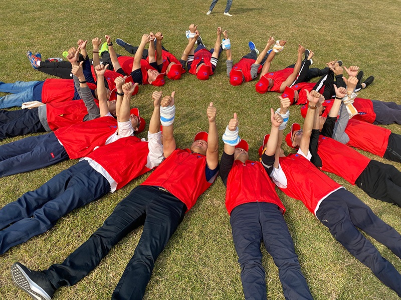 期間隊員們或走或跑,你追我趕。13:43所有隊員均到達均指定地點。